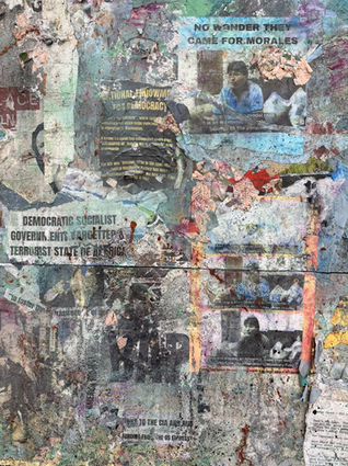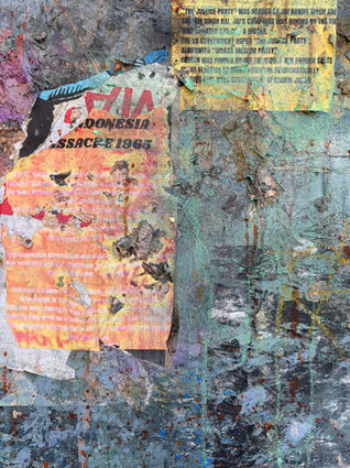 Regime Change appears as a kind of ‘anti-billboard’; a comment on the opaque nature of mainstream media and its cooperation with US and UK foreign policy. The work features text and archival information in the form of images, cables and declassified documents that ought to be common knowledge about western atrocities; instead, they erode and die back into the surface without holding the power-classes accountable.
